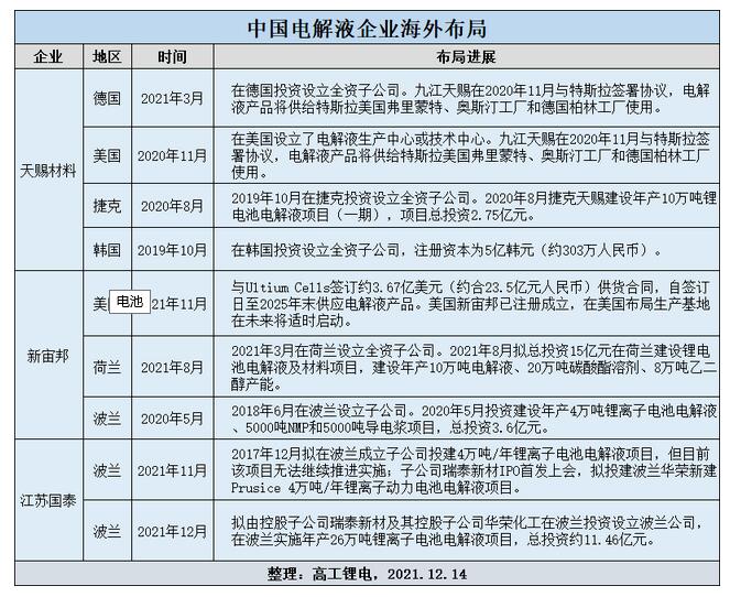 全球电动化加速,动力电池产业链导入本土化生产的需求迫切,带动中国电解液企业集体出海。