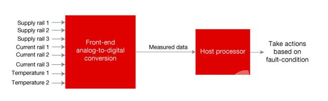 为了达到高水平的ASIL功能安全要求,这些子系统需要通过使用适当的诊断监控机制和并行冗余电路来显著降低故障率并提高故障检测的覆盖率。它们需要测量和识别与不同电源轨相关的潜在故障,检测不同电源的电压或电流消耗是否有任何异常以及系统温度是否有任何波动。诊断出这些故障后,需及时采取适当的措施。图3显示了实现此功能的概念方框图。