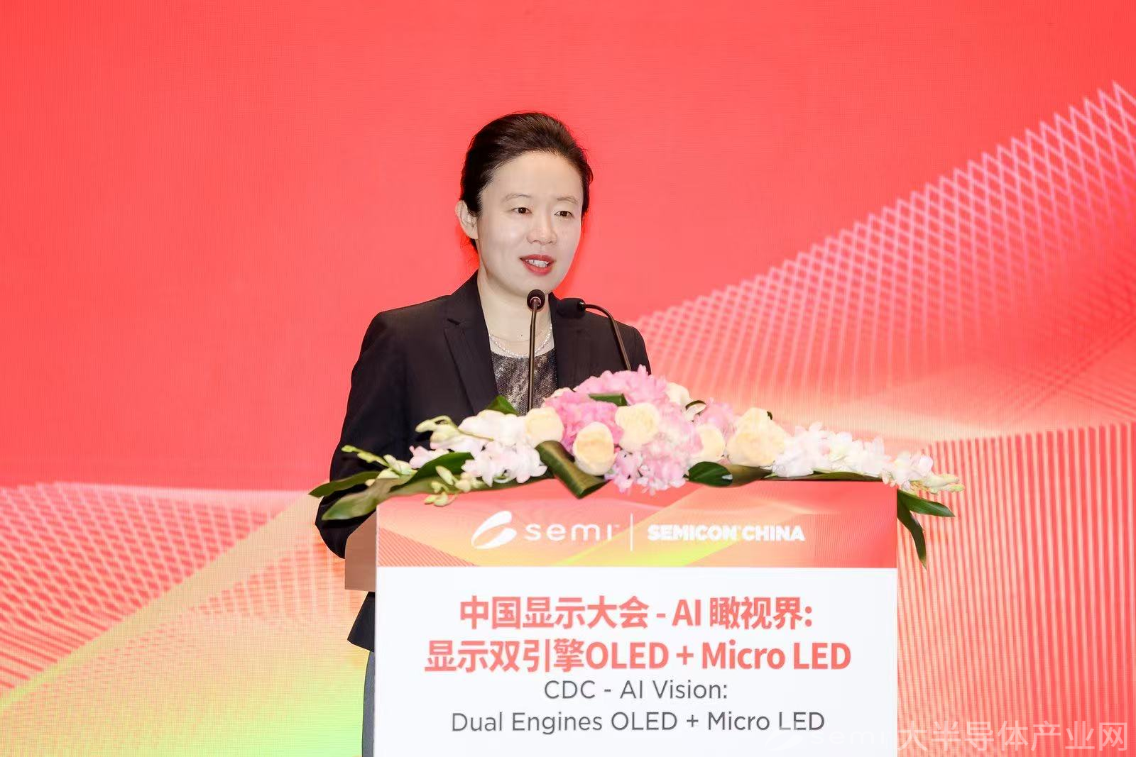 SEMI中国总裁冯莉在致辞中指出,在AI算力及数字经济的推动下,全球半导体产业迎来历史性时刻。本次大会以AI瞰视界·显示双引擎OLED+Micro LED为主题,聚焦三大方向:AI+AR智能眼镜深度融合、G8.6代OLED大屏量产突破、Micro LED在AR显示与CPO共封装光通信创新应用。冯莉表示,作为国际化高端产业交流平台,大会汇聚全球顶尖显示企业,国际芯片厂商,以及新型显示与XR生态领军企业,集中展示OLED、Micro LED技术路线、光学碳化硅、低功耗芯片、CMOS集成等核心成果,打通全产业链协同,共筑自主可控、开放创新、全球领先的半导体显示产业新生态。