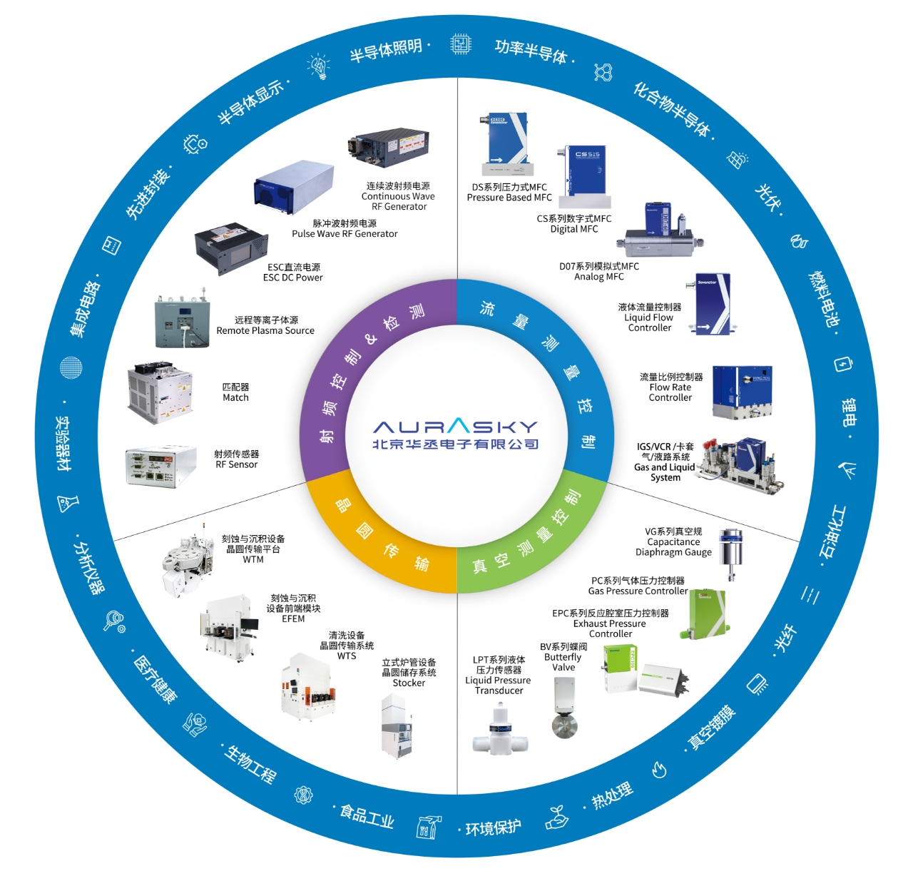 华丞电子为客户提供高性能的精密控制解决方案,凭借先进的射频控制、流量控制、压力控制及晶圆传输技术,为半导体、清洁能源、真空工业、生命科学及科学研究五大领域客户创造核心价值。华丞电子提供通过CE-EMC、RoHS、UL、SEMI S2、SEMI F47等认证的标准化产品系列,同时可根据客户实际需求进行定制化开发,兼顾了产品规范性与应用灵活性。