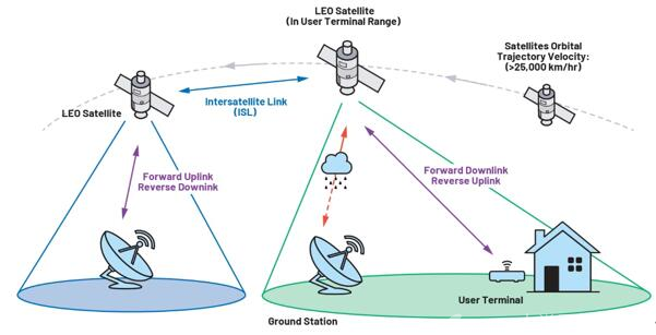 LEO卫星在太空中移动,通常一颗卫星环绕地球一圈的时间在90分钟到110分钟之间,这称为轨道周期。因此,连接到卫星的用户处于该卫星的范围内的时间很短(最多20分钟)。普通用户在正常运行期间会连接到多颗卫星。经过一定时间后,系统必须将用户移交给进入范围内的其他卫星,此方式类似于在行驶的汽车中使用手机的人,蜂窝网络中的一个基站将用户移交给另一个基站。这对如何控制波束以保持与最合适卫星的最佳链接提出了严格要求。