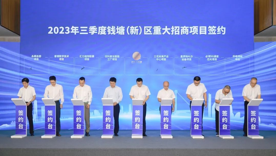 据“钱塘发布”公众号消息,日前,2023年三季度钱塘(新)区“双百亿”重大招商项目签约暨重点产业项目集中开工活动举行。累计总投资达111亿元的8个重大招商项目签约,累计总投资达106亿元的10个重点产业项目集中开工。