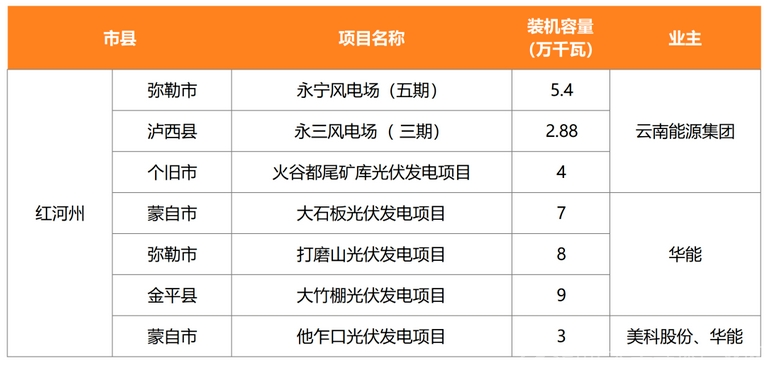 其中,风电项目两个,总规模82.8MW,由云南能源集团获得。光伏项目五个,总规模310MW。