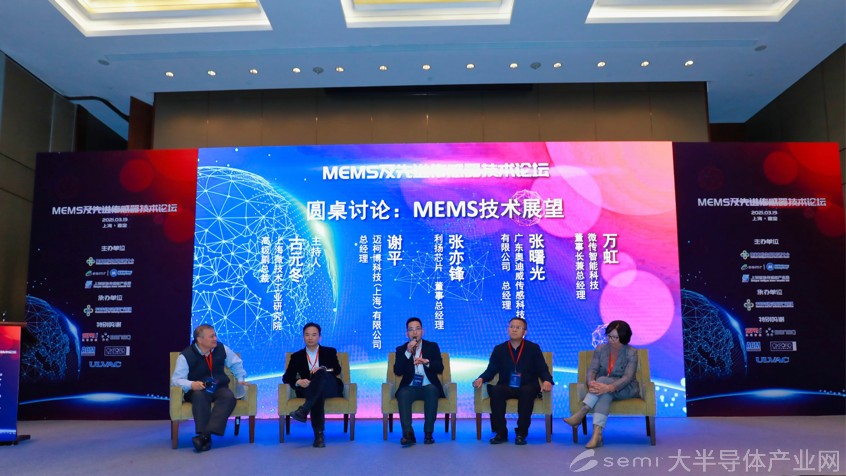 在上午的主题演讲环节,中芯集成电路制造(绍兴)有限公司EVP刘煊杰、盛美半导体设备(上海)股份有限公司总裁王坚、傲睿科技董事长关一民、TE Connectivity 传感器事业部亚太区首席现场应用工程经理杨永辉分别就MEMS芯片的大规模制造和特色工艺平台建设、传感器在半导体设备中的技术应用、智能微流控、湿法工艺等技术、设备、应用等角度介绍全球“缺芯”的大背景下,MEMS及先进传感器所面临的挑战和机遇。随后的圆桌对话环节,上海微技术工业研究院高级副总裁古元冬和利扬芯片董事总经理张亦锋、迈柯博科技(上海)有限公司总经理谢平、广东奥迪威传感科技股份有限公司总经理张曙光、微传智能科技董事长兼总经理万虹,共同展望我国MEMS产业发展趋势、市场驱动力和应用布局。