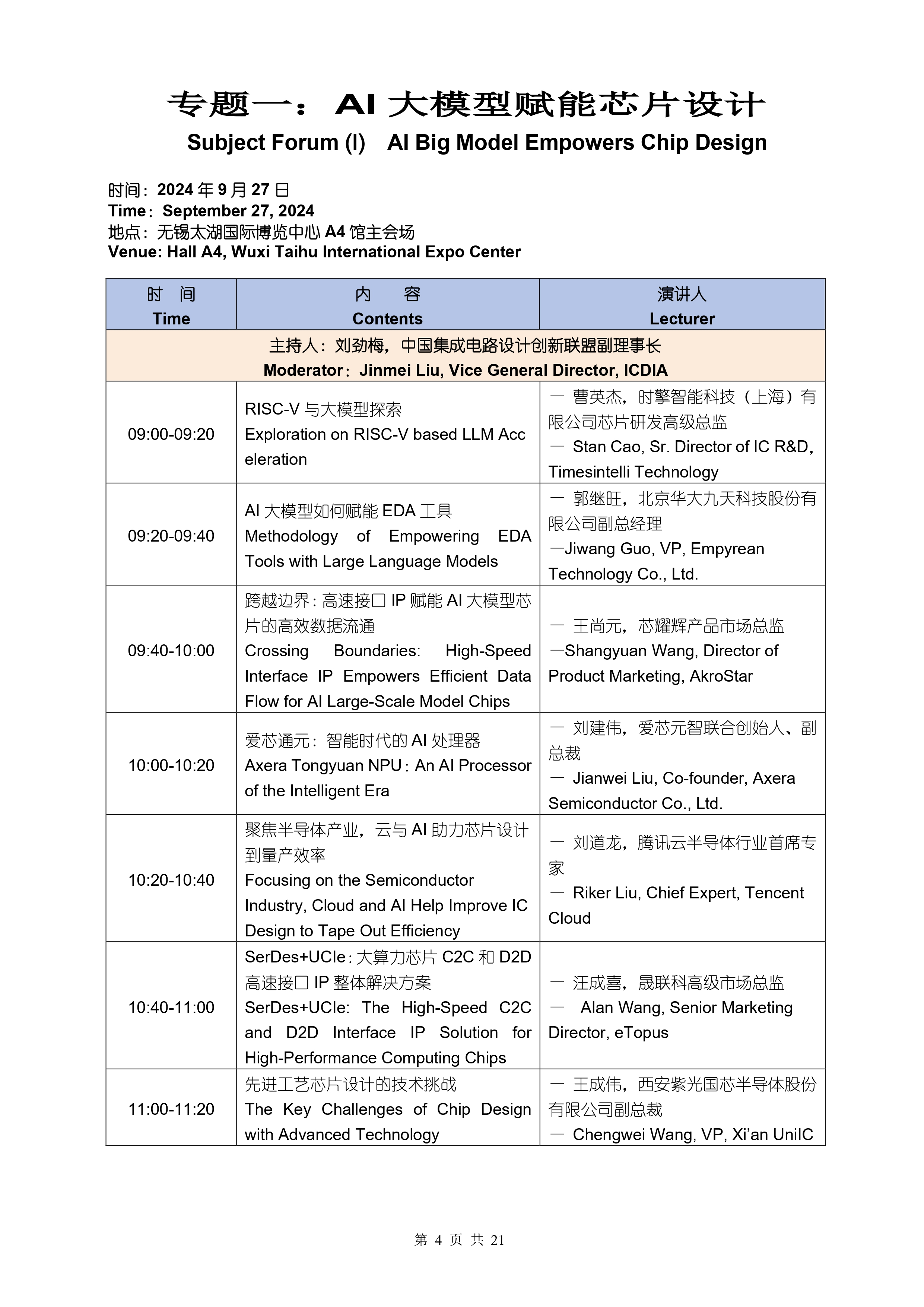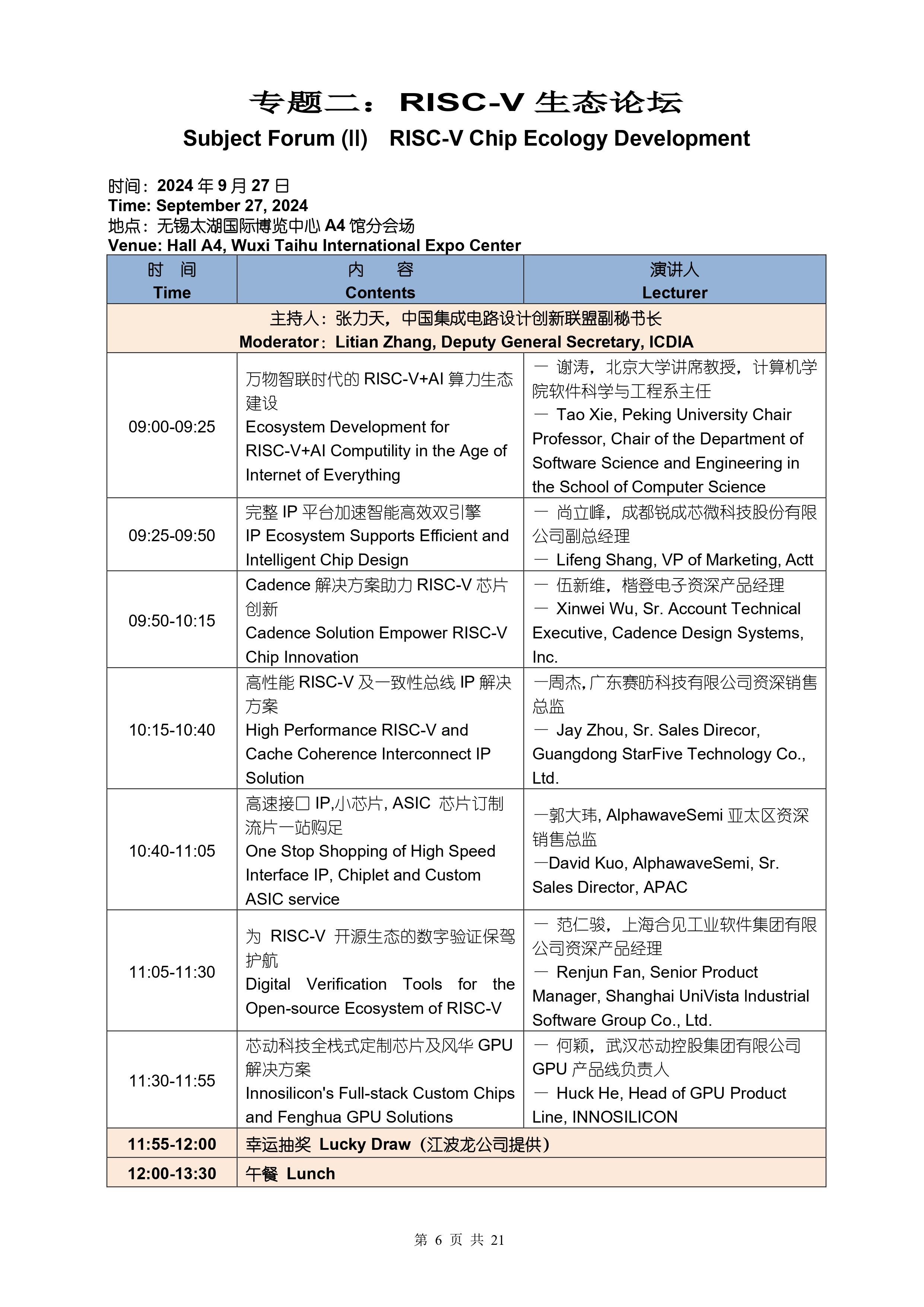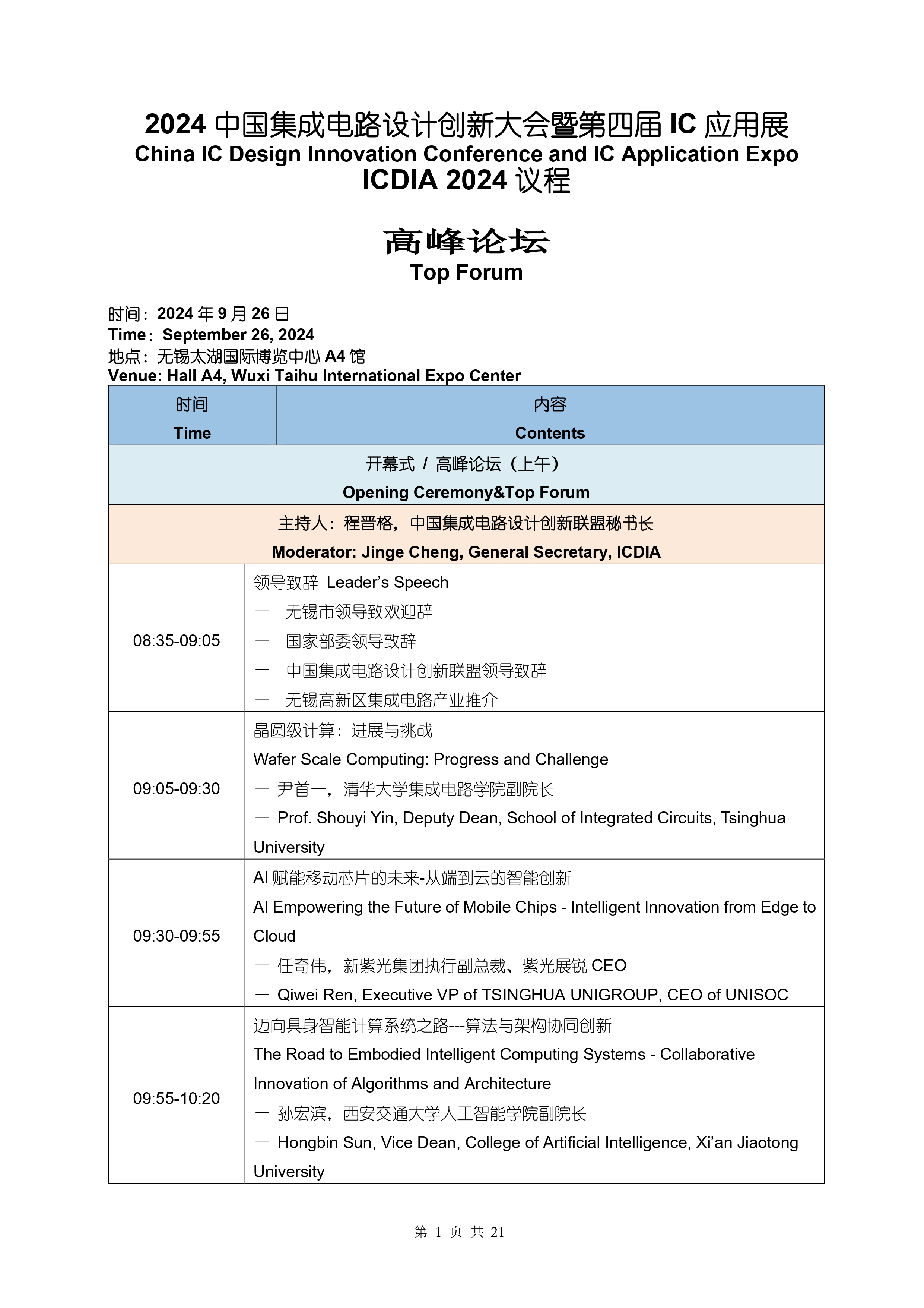 ICDIA 2024以“应用创新、打造新生态”为主题,以“AI应用需求及技术发展”为主线,围绕AI大模型与芯片技术、RISC-V生态、通信与射频技术、IC设计与创新中国芯等内容交流和研讨。分享集成电路设计领域创新成果、热点方向、最新技术、产业进展及未来应用。