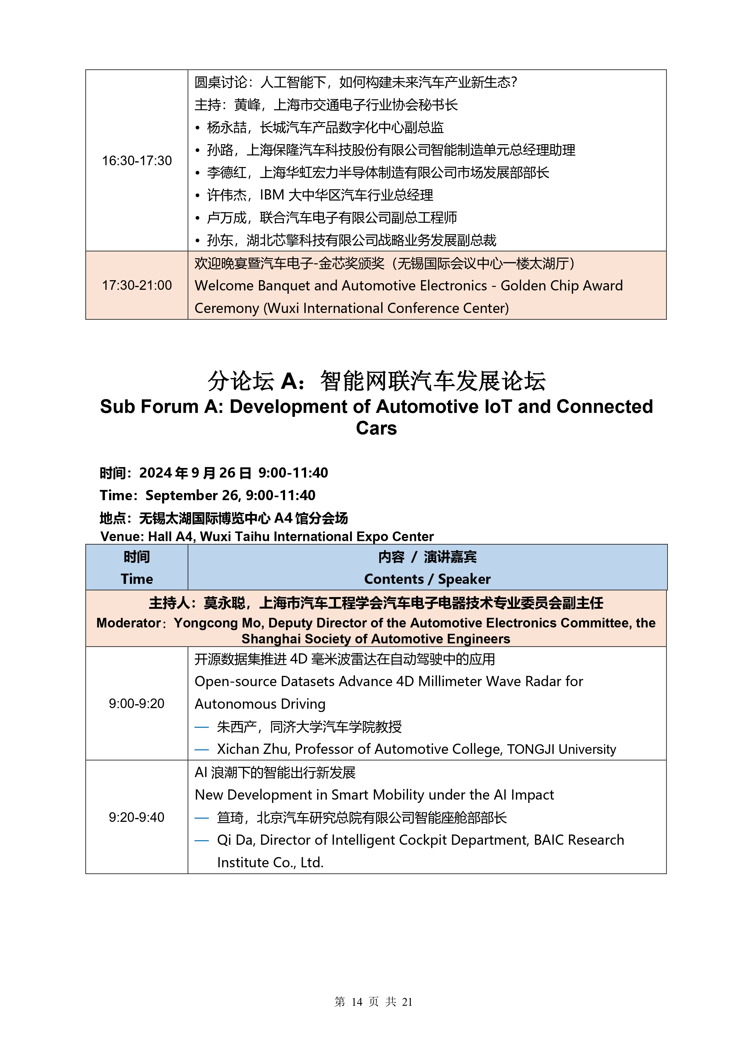 欢迎晚宴 强芯中国-创新IC颁奖 汽车电子-金芯颁奖 |