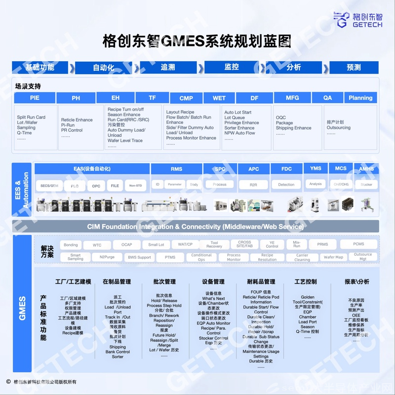 无论是新建先进制程产线,还是现有产线智能化升级,格创东智12吋GMES系统都能提供量身定制的解决方案,助力每一座晶圆厂打造面向未来的智能工厂。