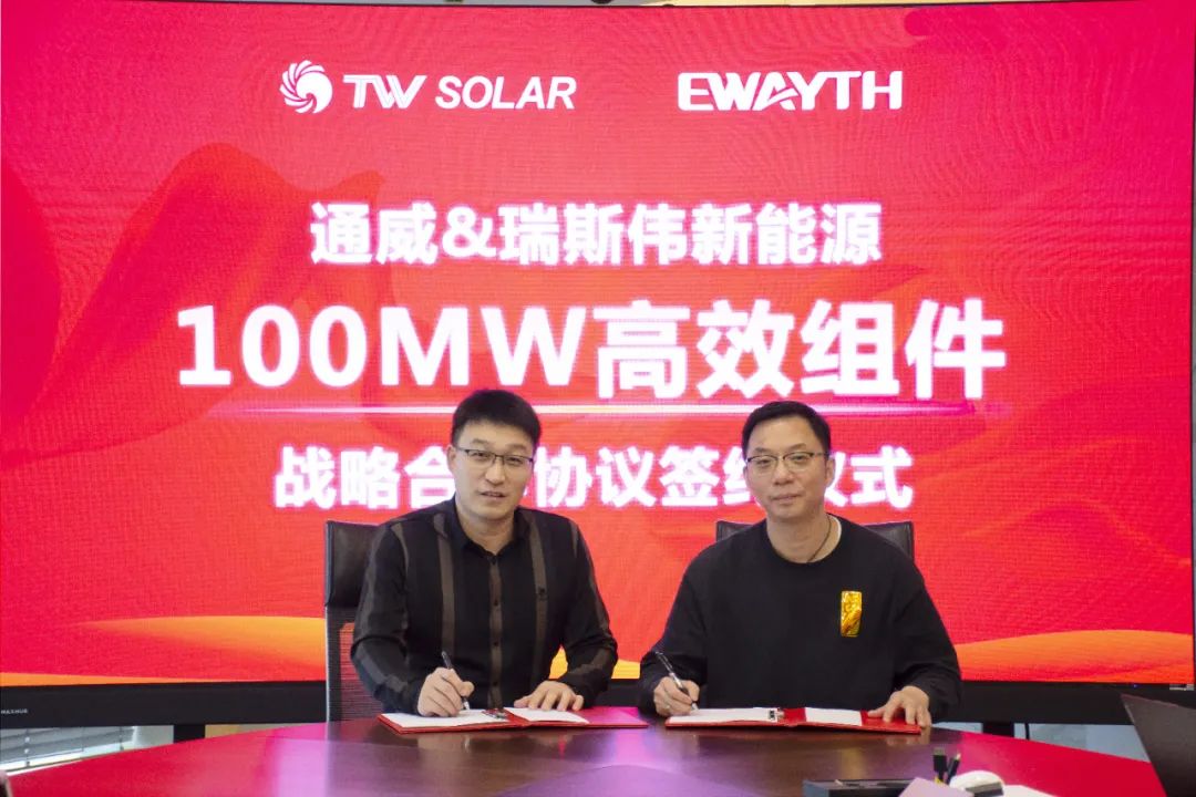 座谈会上,双方分别就能源领域、光伏领域发展前景交换意见,探讨未来发展战略、合作方向,并签署100MW高效组件供应协议及《合作备忘录》。吴建峰董事长表示,瑞斯伟深耕光伏行业15年,有深厚的行业经验及资源积累,与通威合作多年,建立了良好的协作关系绝不是偶然。多年来,通威以过硬的产品质量、优良的商务服务、顶尖的行业水准及“诚、信、正、一”的经营理念,让瑞斯伟坚定认为通威是可信赖、可建立深度合作关系的伙伴。瑞斯伟的主要客户为深圳优秀的上市公司,对产品的质量要求极高,希望通过定期会面,进一步增强交流,为双方合作发展打下坚实基础。