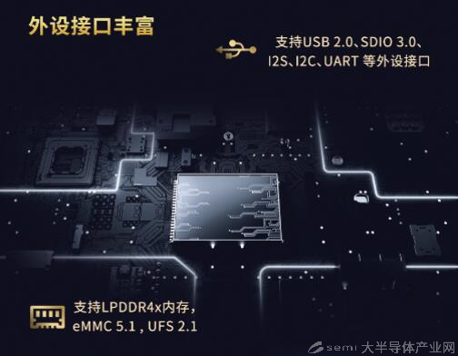 同时,JR510接口丰富。JR510支持USB 2.0、SDIO 3.0、I2S、I2C、UART等外设接口,闪存接口方面同时支持eMMC 5.1与UFS 2.1,丰富的接口为手机厂商进行差异化设计带来了便利。