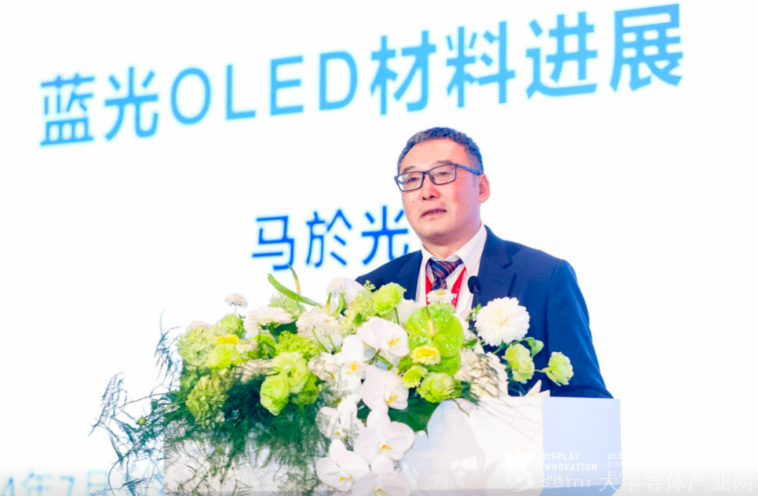 中国科学院院士/华南理工大学发光材料与器件国家重点实验室主任马於光就蓝光OLED材料进展做了主题分享,他表示,OLED屏中蓝光材料是核心,屏的寿命就是蓝光的寿命,屏的效率就是蓝光的效率,蓝光真正的突破会带动整个行业的发展。
