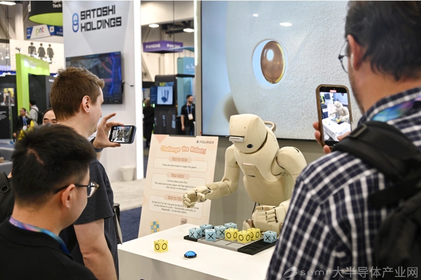 除了展示GR-3强大的情绪响应能力,傅利叶还在展台上策划了“井字棋”人机对弈互动。过程中,GR-3通过视觉识别实时感知棋盘状态,并结合逻辑推演与表情、语音、动作反馈,对对弈者的每一步动作作出拟人化的互动响应,带来兼具趣味性与情感温度的交互陪伴。