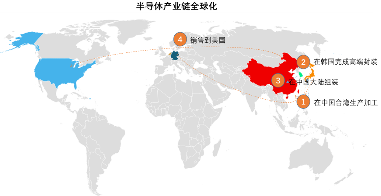 半导体的全球流通路径堪称现代产业的奇迹。一块最终应用于苹果智能手机的芯片,其旅程可能穿越涉及多个国家: