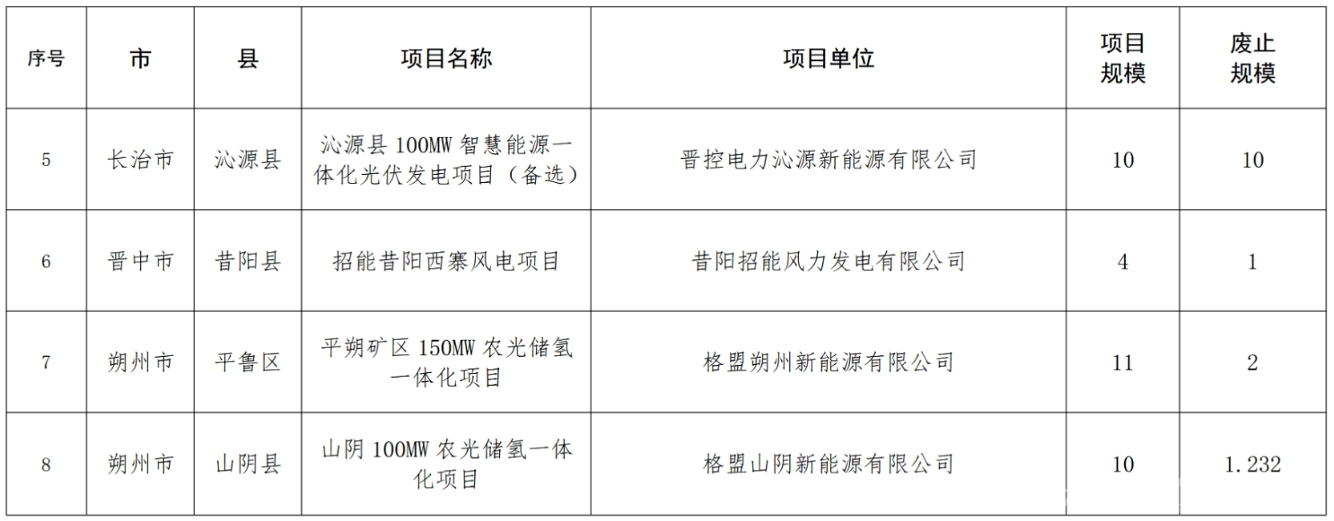 原文提到,为加快推进存量新能源建设,优化电网接入与资源配置,提高项目落地转化率,省能源局组织各市对存量风电、光伏发电项目进行梳理,相关地市上报了拟废止规模项目清单,经山西省能源局汇总,拟对金风天翼泽州县100MW光伏发电项目等8个项目、规模45.732万千瓦进行废止,现予以公示。如有异议,请向相关市能源局提出书面意见,并在公示期(5个工作日)内,由市能源局上报省能源局。